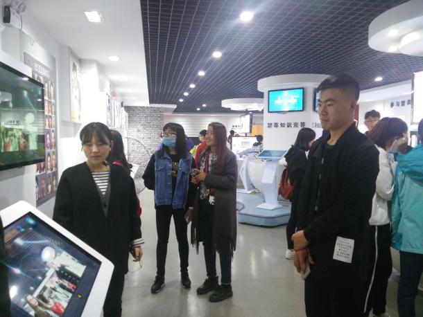 进入基地内,讲解员首先向学生介绍了毒品在我国发展蔓延的大致过程,促使在场学生牢记历史,勿忘国耻。其后,她详细讲解了银三角、金三角和金新月世界三大毒源地,尤其是金三角地区对我国的荼毒。毒品关乎民族存亡,古有虎门销烟之举,今亦有全民禁毒之举,西夏区政府严查毒品,打压毒品生存空间,在禁毒方面取得了不菲的成绩。之后,我们在工作人员的带领下体验了“吸毒后的自己”,吸毒前后的对比图,让我们心生畏惧,毒品毁灭自己,祸害家庭,更会危害社会。认识毒品,方可远离毒品,随着讲解员层层深入的讲解,我们认识了海洛因、GHB迷魂水、可卡因、咖啡因等毒品。禁毒方针的讲述似乎使我们看到一代又一代奔赴在禁毒路上的工作者。四禁并举,预防为本,严格执法,综合治理。参观接近尾声,我们进入禁毒音像厅观看西夏区禁毒影片,禁毒守土,我们永远在路上;利剑出鞘,严打涉毒违法犯罪;强化宣教,根除吸毒土壤。近年来,吸毒人员趋向年轻化,青春的面孔变得狰狞不堪,年轻的生命转眼消逝,鲜血的案例让我们铭记,悔恨的面庞让我们难忘。让我们行动起来,无毒世界,有你有我。最后,同学们观看了禁毒文化长廊。