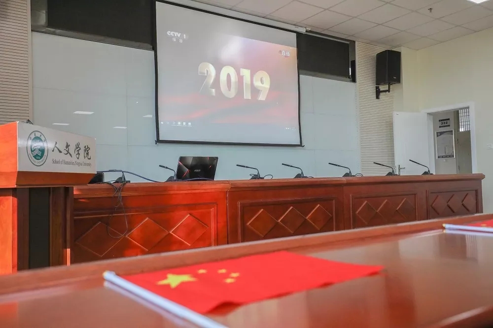 贺兰山校区文荟楼309会议室共同观看了“庆祝中华人民共和国成立70周年阅兵式”,共同见证这一盛世华诞。