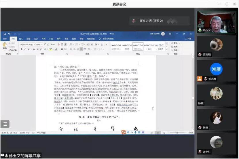 于腾讯会议平台举行了“谈几个汉字及其折射的文化”的学术讲座。本次讲座特邀北京大学中文系教授、北京文献语言与文化传承研究基地学术委员会主任、中国修辞学会副会长,中国训诂学会副会长,中国音韵学会副会长孙玉文老师主讲。讲座由人澳门永利皇宫