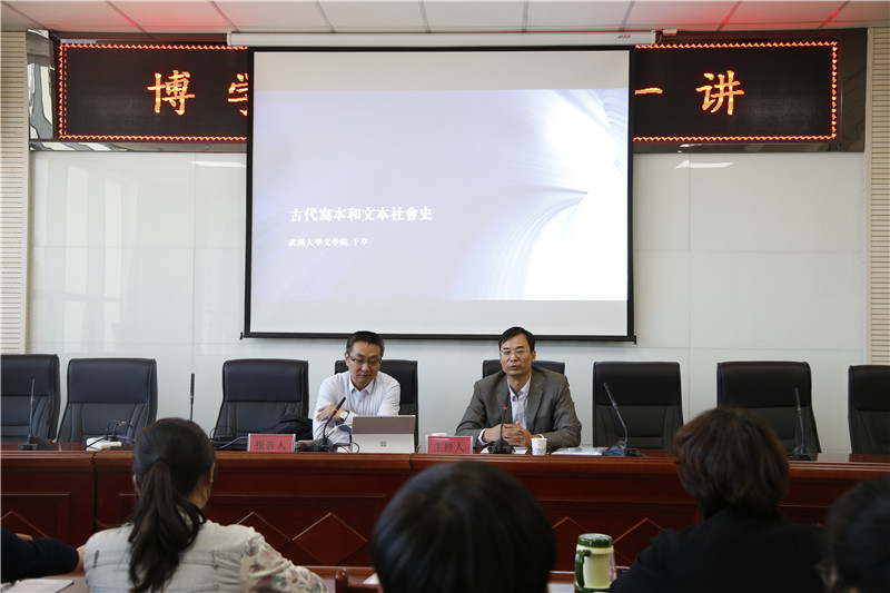 首先,胡玉冰院长为大家介绍了于亭教授的成就及其学术地位,并且回忆了两人大学同窗时期的趣事,讲座在轻松的氛围中拉开序幕。接着,讲座围绕着中古文本和文本社会史展开,其中包括传统的文献学对于古籍及其文本形态给定的理解结构、战国两汉出土简帛古书的文本文献整理和理解诠释问题、中古写本的文本面貌所展示的状况等。