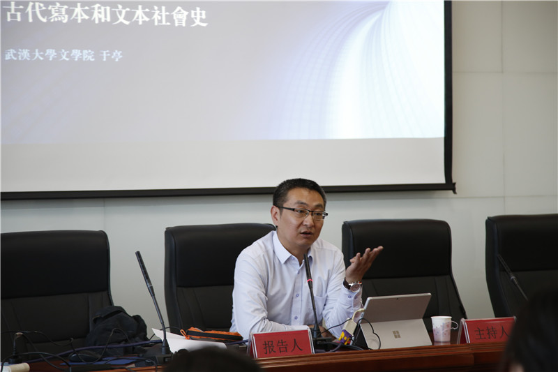 于亭列举了许多中古写本以及刻本的文本面貌来讲解写本的演变,谈及玄应的《一切经音义》的写本和刻本的演变,详述了《河岳英灵集》中关于“夭“和“天”的争议、地方写本的差异性,详细讲解了《将进酒》在宋明时期不同的文本形式与内容等问题。之后,他提出了超越传统的文献学视角的观点,讲述了许多国际上著名的文献研究模式,并且简略介绍了文本研究中的常量与变量等问题。最后,由胡玉冰院长做总结陈词。