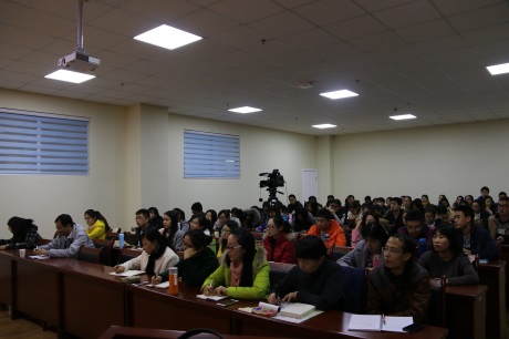 胡玉冰院长及部分教师,2015、2016级全体研究生聆听了讲座,教室座无虚席。