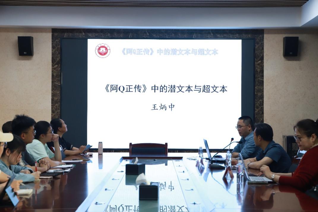 讲座伊始,王炳中教授结合当前现当代文学研究现状,从本次讲座选题思路和意义谈起,分享了如何从经典文本中解读出新意。随后,王教授以小说《阿Q正传》为例,采用文本细读法,逐章对小说人物“阿Q”的精神胜利法进行分析,认为在小说文本中,阿Q的精神胜利法并不时刻存在,而是有其特定场景下的苏醒与退却,并依据文本,解读了其精神胜利法的生理机制。此外,王炳中教授还结合历史史实,对小说文本中提到的各色人物进行剖析,还原真实历史中的人物形象,并与当代文学中的人物形象进行对比,分析作者鲁迅的案头工夫与人物塑造能力。