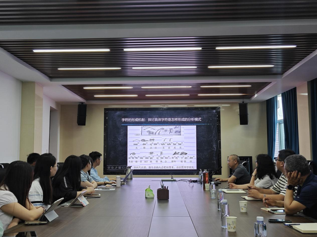 作为重庆市学术技术带头人,邓章应教授在文字学领域研究成果丰硕。讲座中,他首先以东巴文和甲骨文的演变为例,阐释了文字系统的传承脉络,强调追溯字符原始字形的重要性。随后,邓教授系统讲解了字符的分层形成理论,将字符分为初造字与新造字,并指出二者的本质区别在于是否参照已有字符系统。在具体形成机制方面,他详细分析了初造字的仿拟、吸纳与引进机制,以及新造字的变形、截取、附加、改换与组合机制,为在场师生提供了系统的理论框架。