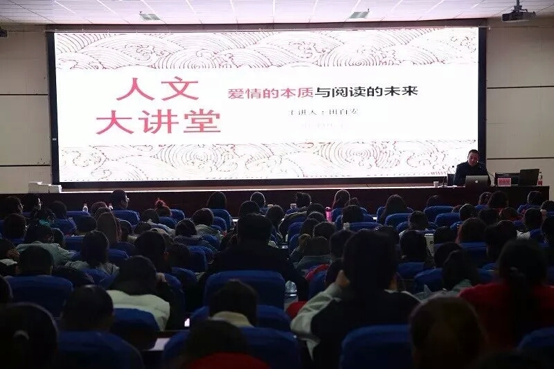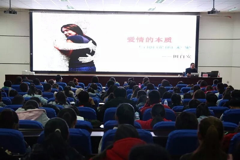 11月7日晚,人文大讲堂第四讲于贺兰山校区文荟楼东侧报告厅开讲。澳门永利皇宫特邀社会学博士、公益心理咨询师、生活质量研究专家、中组部、共青团中央第十七批博士服务团成员,现挂职银川综合保税区管委会党工委委员、副主任田自安老师做了以“爱情的本质和阅读的未来”为主题的专题讲座。人澳门永利皇宫
