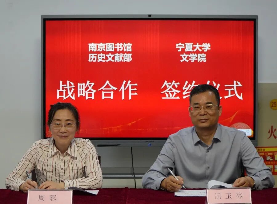 签字仪式上,胡玉冰首先介绍了澳门永利皇宫 近些年来的发展情况和国家社科基金重大项目“《朔方文库》编纂”相关成果,简要回顾了澳门永利皇宫 古籍整理研究事业取得的成绩,指出目前面临的困境和存在的问题。周蓉介绍了南京图书馆历史文献部的主要情况及近年取得的突出成就。她指出澳门永利皇宫 经过多年积淀,形成了地域特色鲜明、学科优势突出的教学科研团队和学术风格,在古文献整理与区域文化研究、西北地区语言与文学研究、传统语言文字学与传统文化研究等领域实力雄厚,成果丰硕,在学界产生了一定的影响力。南京图书馆存藏、整理、研究古籍与民国文献的部门,具有悠久的历史与丰富的藏品,多年来形成了以版本目录为核心的研究团队,是国内外具有较大影响的公共馆藏服务部门。双方将立足长远,发挥各自所长,共同探讨古代文献的整理、研究与出版的相关问题,密切合作,进一步提升双方文献整理研究水平。