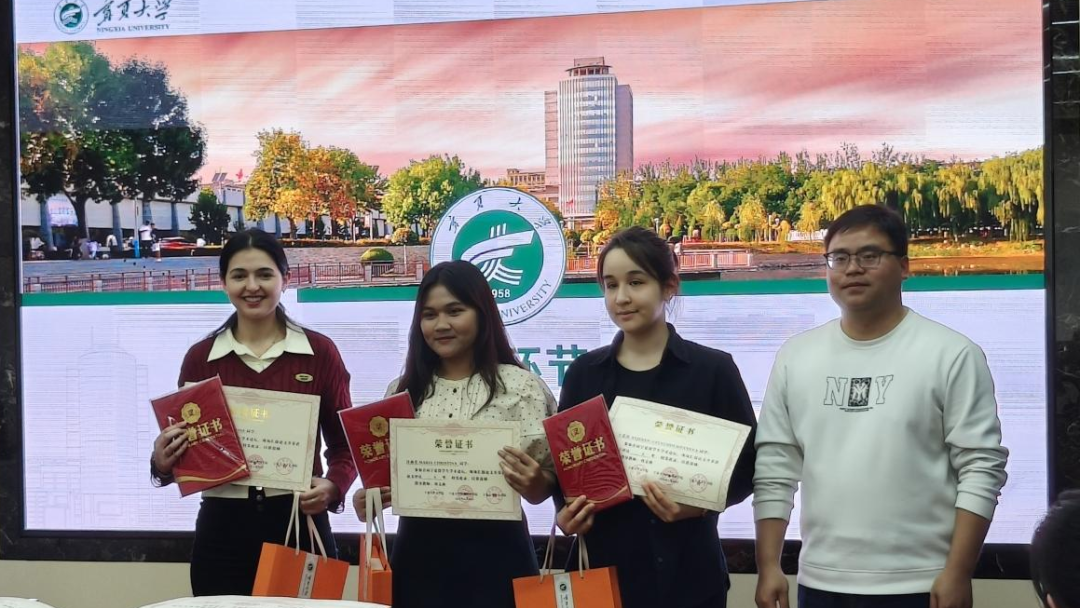 经过紧张的分数汇总与奖项评选,结果最终揭晓:澳门永利皇宫 乌兰格(蒙古)荣获一等奖,姆西罗(赤道几内亚)、张娜(俄罗斯)获得二等奖,倪思琳(摩洛哥)、许燕美(印度尼西亚)、王爱莎(土库曼斯坦)斩获三等奖,陶氏玄(越南)、艾小美(吉尔吉斯斯坦)、闫敏(埃及)、艾琳(吉尔吉斯斯坦)、甜甜(埃及)获得优秀奖。三位评委老师和国际中文教育系闫慧颖老师为获奖者颁发了荣誉证书和奖品,这不仅是对获奖留学生学术成果的认可,更是对他们努力付出的鼓励。