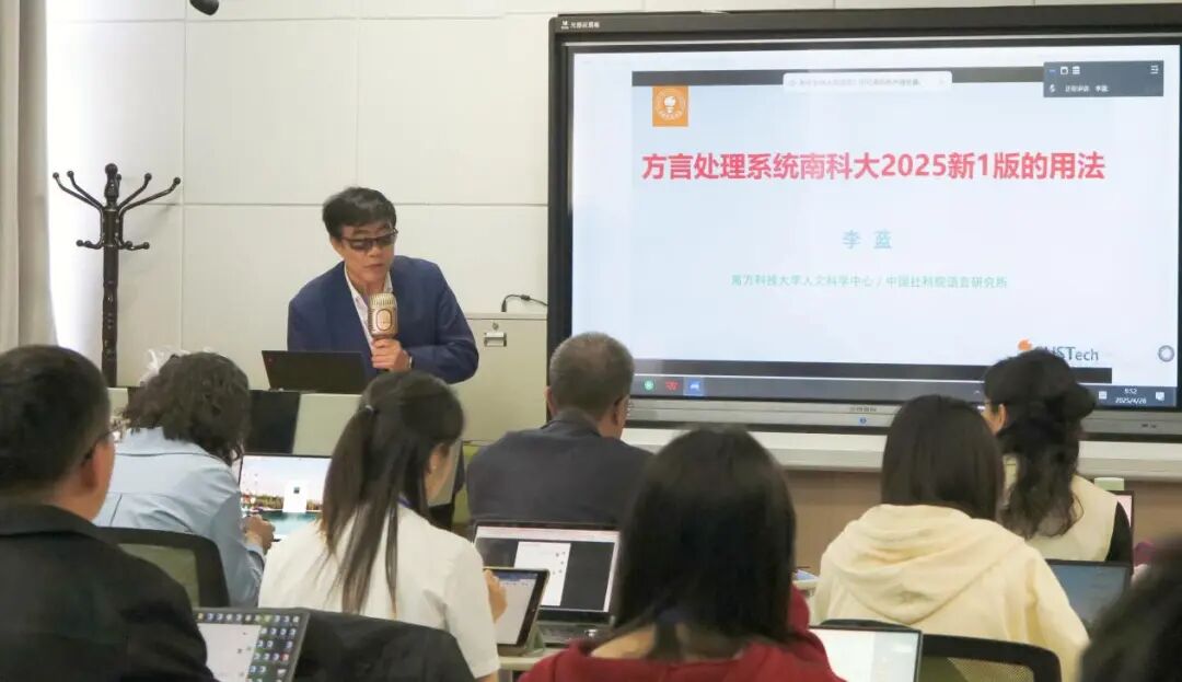 特聘教授李蓝老师现场演示由其负责开发的方言处理系统软件最新版本的核心功能,重点讲解“南科新一版”的升级要点、声学参数提取、语谱图分析等技术操作。学员通过现场操作,掌握了从新建调查点、导入导出语料数据、处理异常语料数据到生成语料分析表格以及录音设备的调试等全流程。针对不同地域的声调变异现象,李蓝老师带领学员利用软件生成音频语图,直观比对发音差异,为精准记录提供技术支撑。