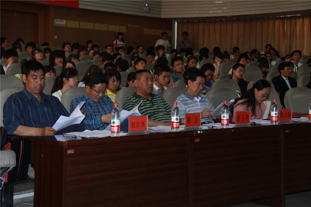 党总支副书记金玉河老师、历史系主任张訸老师、新闻系主任薛金强老师、旅游系主任毛凤玲老师、中文系赵彦龙老师作为评委参加了本次报告会。