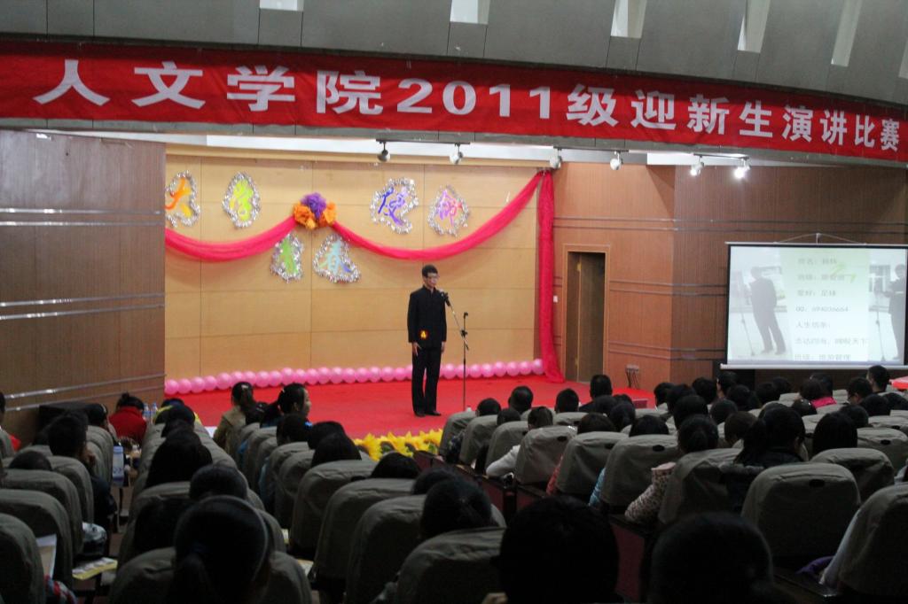 在B区逸夫图书馆报告厅成功举办了2011级“大学·青春·使命”迎新生演讲比赛决赛。