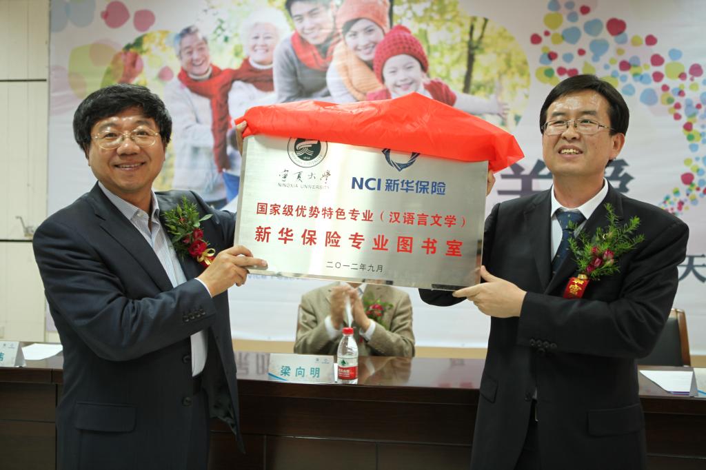 党总支书记梁向明、院长郎伟、副书记金玉河、副院长宫京成,新华保险宁夏分公司党委委员、运营总监纳生图等出席了捐赠仪式。捐赠仪式由学院副院长宫京成主持。