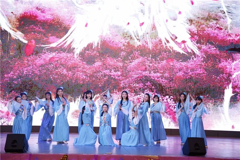 表彰大会结束后,迎新生文艺演出在充满传统文化的舞蹈《剪纸姑娘》中拉开帷幕。唯美的音乐、明快的节奏,彰显着青春的活力。在第一篇章“琼秀宁大,碧窗菲花”中,诗朗诵《辉煌中国》带领同学们遨游在二十四史的九曲回肠之中,用心表达出了中国梦的伟大诗篇,传递了宁大学子热爱祖国、圆梦中华的情怀。文学之昌盛、人物之俊彦,与民族患难与共,尤以金陵为最。2017级文秘班的同学们用舞蹈剧《金陵十三钗》把同学们带回了80年前的南京,让同学们在领略秦淮凄美的同时,引发了对国家民族兴亡深深的思考。一只袅袅婷婷的舞蹈《风筝误》,瑞彩翩跹、衣袂翩翩地将大家引入第二篇章“尘谢芳华,春绽新芽”。舞蹈剧《北冥有鱼》用唯美摇曳的舞姿展现了蓬勃之美,行云流水地为大家奏响了歌颂初生的诗篇。由马正亮、胡玉冰、马小军、王岩森、刘鸿雁、杨浣带来的诗朗诵《青春宁大》奏响了本场晚会的最强音。“为天地立心、为生明立命、为往圣继绝学、为万世开太平”,这是教育工作者筚路蓝缕、以启山林的责任与担当,是宁大人孜孜以求、锲而不舍的价值选择!第三篇章“尘谢芳华,春绽新芽”伴随着充满动感的曳步舞《“曳”幕降临》迸发出强力的乐章。压轴的秦腔《打镇台》选段与京剧《梨花颂》串烧为同学们带来了全新面貌的古典戏曲,带领全体同学领略了传统文化之美。相聚难得别亦难,洋溢着民族风情的舞蹈《喜相逢》以豪迈潇洒的舞姿,为本次晚会画上了圆满的句号。