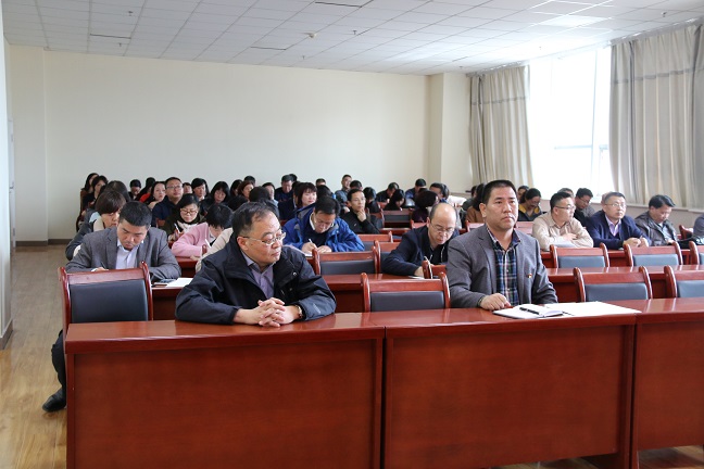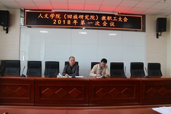 (回族研究院)党委在贺兰山校区文荟楼309报告厅召开2018年第一次全体教职工大会暨教职工思想政治理论学习会,马正亮书记主持会议并讲话。