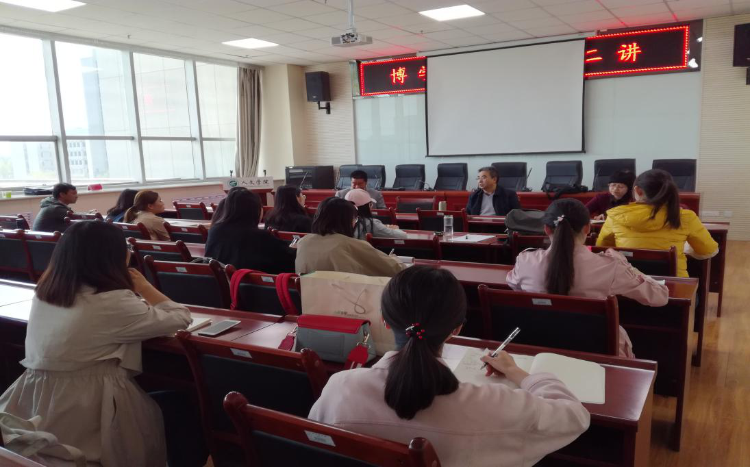 第二环节,伏俊链教授与参会的硕士研究生进行了亲密的交流,在对学生提出的问题给予了精彩的解答同时,还为他们现在的学习生活和研究方向进行指导。研二的吕紫禾同学就她的论文写作向伏教授请教了两个问题,即《吕氏春秋》与秦文化的关系及先秦历法在文本中的书写差异;李地鑫同学也就清人评价明代文献学研究是否公允存疑;应薇、任静,张英丽、以及汪胜等四位同学也就自己研究课题中存在的问题向伏教授请教。伏俊琏教授充分肯定了同学的提问,并从中国古代文体分类、古代历法、文艺学以及文献学版本学等角度作了精彩回答。伏教授在解答中表示中国古代文学专业的硕士生在学术方面应保持“辨章学术,考镜源流”的精神,从西方文论、文献学及其他专业中汲取所需的研究方法和知识。伏教授为与会师生的答疑解惑精彩处如沐春风,警醒处如听春雷,入神处如品春色,缓和处如抚春江。