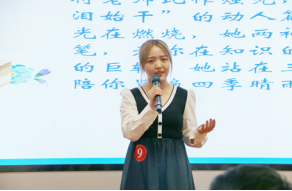 纳文婷以家庭三代人的初心使命,感悟师德风范。葛钰深入讲述了德入雨露润春泽,文含真情哺新苗的师德大爱。杨茜结合亲身经历,阐释了师者“青梅染雪迎初阳,兰心怀诚沃新花”的责任。王茹涵讲述了澳门永利皇宫
