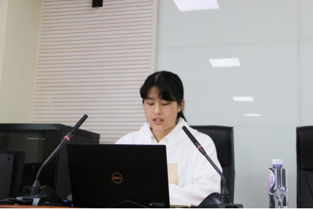 颁奖环节结束后,由2021级汉语言文字学研究生甄娇娇主持获奖研究生代表学术论文报告会。本次大赛获一等奖的学生代表进行论文分享展示。汉语言文字学专业2020级研究生贾雨晴、中国古代文学专业2020级研究生韩亚卿、中国近现代史专业2020级研究生赵紫旭、中国古典文献学专业2020级研究生宣莉、比较文学与世界文学专业2020级研究生张雪琼、学科教学语文专业2020级研究生甄福霞分别作了题为《说安大简<召南·鹊巢>的两组异文》《<文心雕龙>“奏议类文”文体观探微》《从美国国会图书馆藏<山东黄河光绪二十七八两年险工图:一卷>看光绪年间黄河管理》《美国国会图书馆藏<山东省黄河图>初探》《“不写之写”亦含美——浅析莫迪亚诺<暗店街>的叙事空白》《冯友兰境界理论下的高中外国文学作品的选文优势》的学术论文报告。