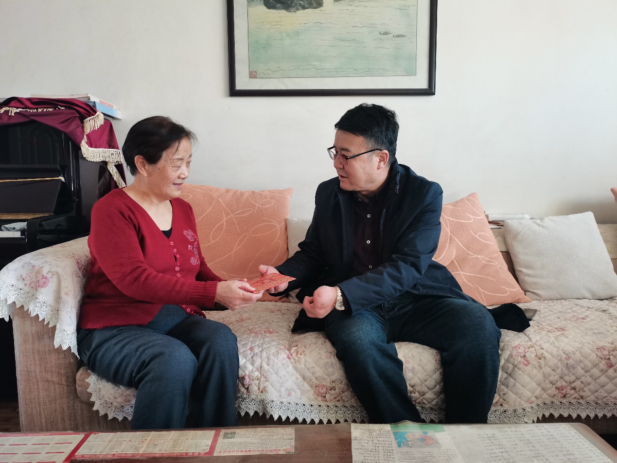 在 中国传统的新春佳节来临之际,1月15日,学院领导张培松、胡玉冰与其他院领导一道,分两组分别带领院工会、院办人员慰问了王庆同、刘继德、田美琳、钱志和、马丽珠、谢式燕、赵慧、冯霞、惠继东、刘志虎等十位退休教职工,为他们提前送上了美好的新春祝福,祝愿老教师身体健康,阖家幸福。