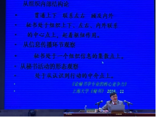 在随后的讲座中,秘书学专业的开拓者、建设者、74岁高龄的杨剑宇教授就秘书学的专业定位、培养目标、竞争优势以及举行秘书学竞赛的必要性进行了讲解。他鼓励同学们面向全国、放眼世界,努力学习专业知识,练就扎实专业技能,不断积累经验,提升业务水平,使自己成为适应社会需要的复合型人才。这次讲座,不仅给予各高校秘书学科建设带头人以先进经验,也深深鼓舞了各高校参赛学生。