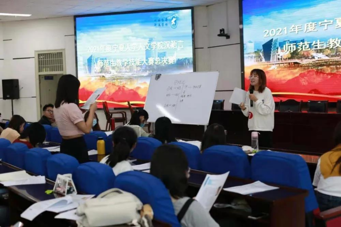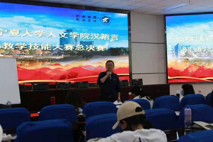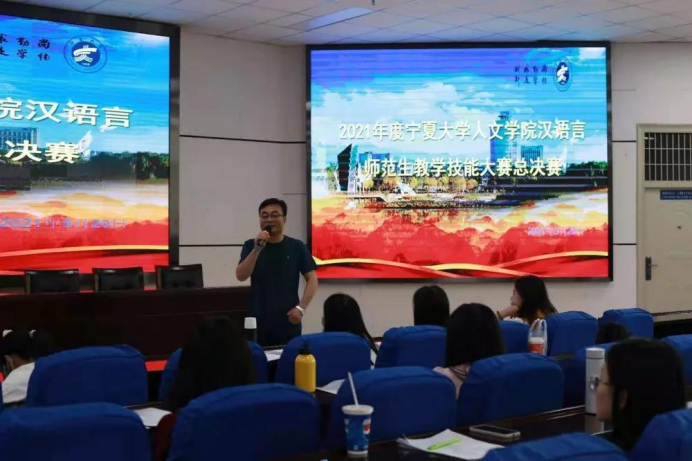 于贺兰山校区文荟楼一楼东侧报告厅举办汉语言文学师范生教学技能大赛决赛,宁夏教育厅教研室语文教研员、教研室高研部主任、自治区级骨干教师安奇老师,银川六中中学语文高级教师、银川市骨干教师、银川市语文学科中心组成员、首届银川市家庭教育讲师韩万仕老师,人澳门永利皇宫