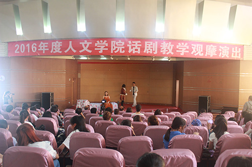 话剧教学观摩演出在怀远校区图书馆一楼报告厅成功举行。院党委书记鲁晋,院长胡玉冰,副院长王岩森、刘鸿雁、杨浣,部分中文系老师和14、15级学生观看了此次演出。 本次话剧教学观摩演出以2014级汉教一班带来的《罗密欧与朱丽叶》拉开帷幕,忠贞凄美的爱情故事令人唏嘘感叹。接着,2014级文秘班带来了享誉世界的喜剧《伪君子》,让观众在笑声中思考人生的真假善恶。曹禺的《雷雨》1935年首演,至今上演不衰,被誉为“表演的教科书”,2015级中文系学生的精彩演绎赢得了观众阵阵掌声。最后,2014级汉教二班带来了《暗恋桃花源》,真挚持久的恋情与人生沧桑交织在一起,不禁让人潸然泪下。 演员们张力十足的表演使得故事和人物形象变得生动、鲜活起来,现场观众仿佛亲身感受到了剧中演绎的悲欢离合、爱恨情仇,不时响起热烈的掌声。 演出落幕后,胡玉冰院长对整场演出作了精彩点评。他首先称赞了演员们的精彩表演,然后对四场话剧的指导老师——丁峰山、魏兰、李生滨、白晓荣、范文艳、于凤艳、马永利的指导水平和辛勤工作予以肯定。同时,胡院长充分肯定了话剧表演这种教学方式,不仅培养了中文系学生的专业知识和学科素养,强化了学生对话剧及表演艺术的欣赏和尊重,还是人澳门永利皇宫