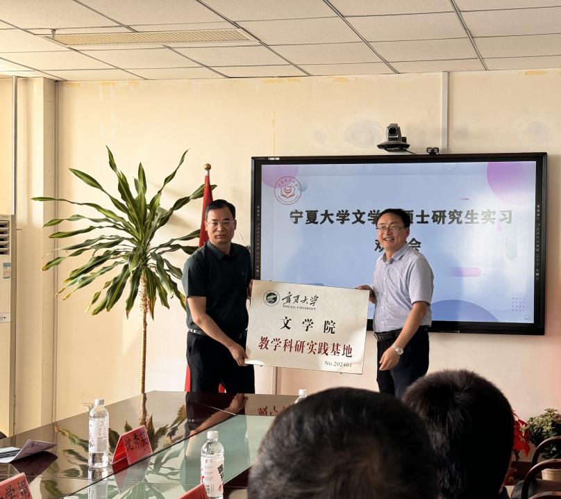 院长胡玉冰、副书记兼副院长杨学娟、副院长刘鸿雁、学位点负责人沈秀英、实习带队老师梁艳以及十四名实习生,宁夏育才中学党委书记王寿江、校长赵保利,副校长罗保林、官军山以及十四名语文学科指导老师参会。